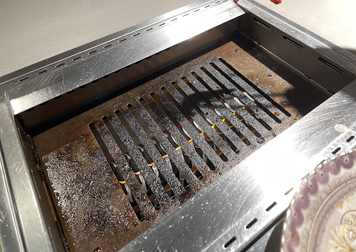 Attached is a photo of the grill plate we were given during our visit. As you can see, the grill appears to be in a condition that should warrant a cleaning or replacement. It was dirty with burnt food residues, which affected our overall dining experience. While we understand that we ordered the lunch set, we also added extra items and expected a clean grill for proper cooking. It’s hard to enjoy the meal when the grill plate is in such a state.
