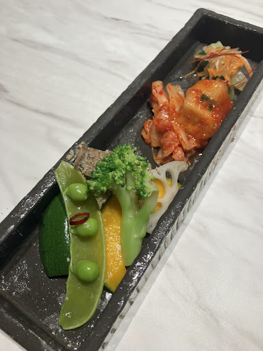 I was really looking forward to dining at this restaurant, but unfortunately, the experience was disappointing. We were seated at the counter, and out of the three groups of customers at the counter, we were the only ones who didn’t receive proper service. The server didn’t greet me when we entered, which I could overlook, but it got worse from there. The other two groups had servers helping them grill their food, but we were left completely on our own. We almost finished our meal before they brought the butter for the grilled beef, and no one explained how to use it, which almost led to us burning ourselves.