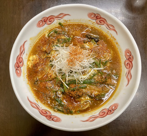 Chinese Cuisine Gojyuban @ 5-6 Yokoyama-cho, Hachioji City, Tokyo Hi, this is Sapio. Red chives and egg noodle soup (spiciness 5)  ð¥Points â Deliciously spicy and salty homemade noodle soup with fluffy nira-tama! â No sesame feeling or garlic â Red menu is fixed at 5 or 10 spicy!  ̄ ̄ ̄ ̄ ̄ ̄ ̄ ̄ ̄ ̄ ̄ ̄ ̄ ̄ [Points] 82 points â3.7 [Access] Hachioji Station (425m) [Holidays] Water [Order Menu] Red leek and egg tantanmen 1,100 yen [Line upã»System] No line up, pay after ordering orally [Ingredients] Animal broth, spicy vegetable broth, egg, chives, white onion, chili pepper, onion, kikurage mushrooms, shiitake mushrooms, Chinese noodles [Taste] spicy