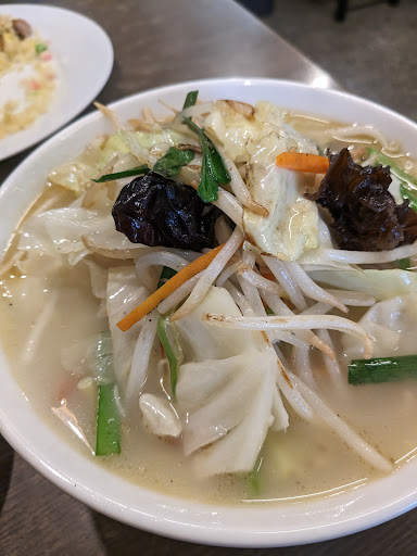 日曜日のお昼時にうかがいました。ソロ客から家族連れまで様々な客層で賑わっています。タンメンとチャーハンを頂きました。タンメンは中華鍋炒め系のキクラゲや豚肉と野菜がのる具沢山タイプで、香ばしく炒められた野菜と豚肉が食欲をそそり美味しいです。また麺量は180gほどでしょうか、タンメンスープとの絡みのよいモチモチとした中太麺です。他のラーメン類の麺は細麺なのでこだわりが感じられます。