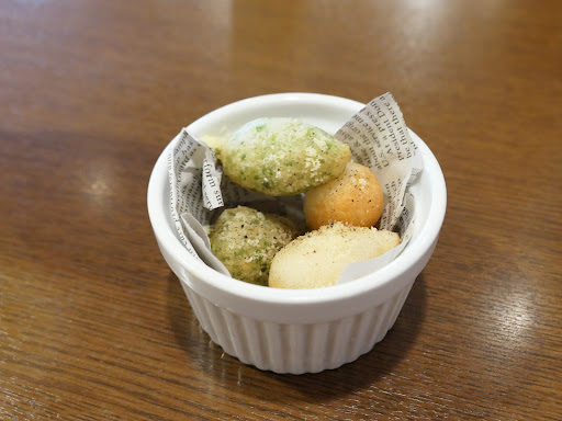 ・グリル盛り合わせ →この日の盛り合わせは、黒毛和牛ウチモモのグリル、国産豚肩ロースのグリル、和牛ハツのグリル、個人的にはやっぱりウチモモのグリルが好みでした。付け合わせのマッシュポテト、西洋ワサビ、ピンク塩をお好みで付けて食べられます。