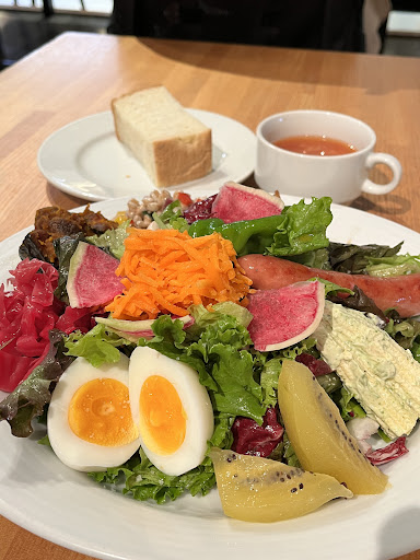 サラダは品川店のと同じ感じ。 色々なお野菜が入っていて 彩が良く、セットのサラダなのに量もある。酸味があるドレッシングも美味しい! このサラダは味、量、コストとどれも良い。