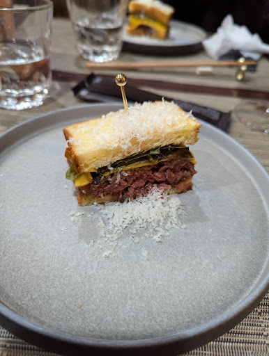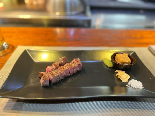 Every dish was crafted with precision and showcased exceptional quality. The seared Wagyu sushi garnished with gold flakes was a luxurious treat, melting effortlessly with each bite. The sliced Wagyu beef with fresh herbs was incredibly tender and packed with rich flavors. The salmon dish topped with caviar and garnishes was vibrant, fresh, and beautifully presented.