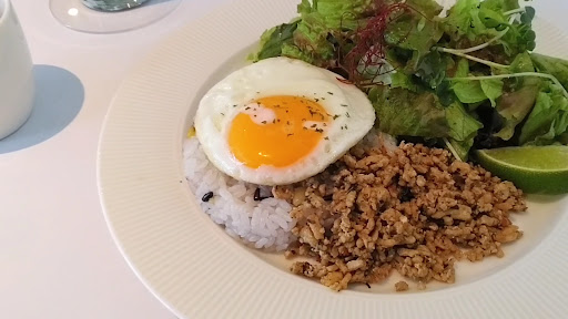 主食となるガパオライスは、全体的に少なめで、小食の私にはちょうどよい量でしたが、一般的な男性は物足りなさを感じるのではないかと思います。 カフェですので、食後のケーキなどを想定した分量なのだと思います。