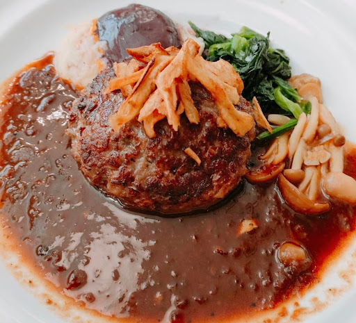 濃厚でドロッとした、甘みのある黒いルーに、ガストの人気NO.1メニュー「チーズINハンバーグ」や唐揚げ専門店「から好し」の「から揚げ」、「うすかつ」、「海老フライ」、「目玉焼き」の5つのトッピングがのったビッグボリュームカレー🍛