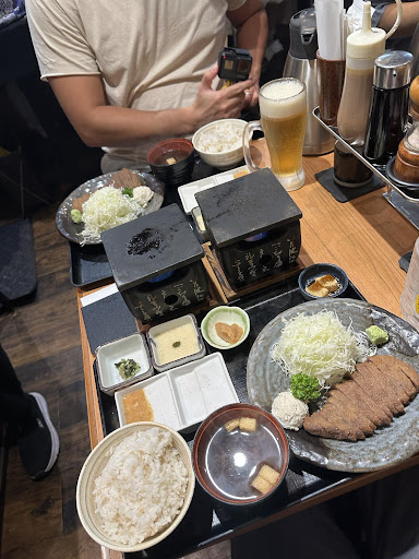 Read moreFirst meal in Tokyo, and we picked a winner. First time having Gyukatsu! Enjoyed every minute of it. Went on a Friday night and didn’t have to wait soo long, went down two flights of stairs, then had only 8 bar stool seating at the counter, then three tables for two to the end. There’s even a bathroom! Couldn’t believe it! Didn’t use it though. Meat was very good, tender and juicy, even if you forgot about it, on the stone . It’s a cool experience. You can have extra rice bowls for 100 yen, you choose the size of meat cutlet you want, and it comes in a set- loved the miso soup and cabbage salad. Dressing is on table. I too liked it with the sauce they bring to you, or mix the wasabi with soy sauce. Yum. Got to mention that the staff were so quick, and efficient and very friendly. They cleared up tables really fast, and gave us menus before going in and asked us for our...