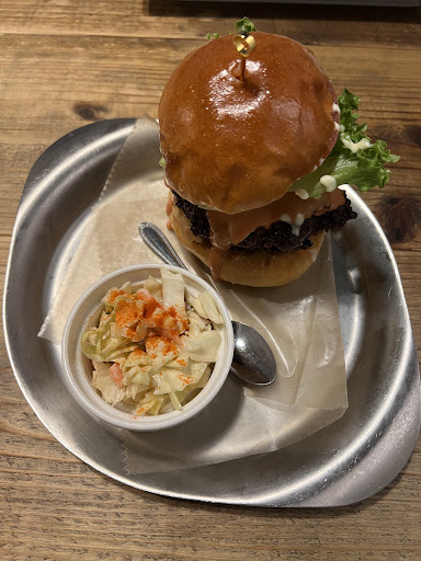 It used to be a Yakiniku restaurant. I think it just had to make the door open and look inviting if not many customers didn’t come. Instead, it turned to a burger shop. The taste was good. The patties were 100% Wagyu but I couldn’t really tell tbh. The buns were good too but not surprising. Generally the portion size was small. You’d walk out being still hungry. The staff were nice and friendly. Not smooth operation tho. I hope they serve drinks or at least water first while we’re waiting. The chairs were all stools and hard, not comfortable, except the table...