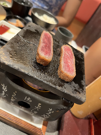 Read moreGyukatsu Motomura has been a longtime favorite of ours since before we had kids, and we were happy to find that the experience still holds up years later. This time, we visited the Shinjuku reservation branch as a family, and it was just as delicious — with a few thoughtful upgrades that made dining with little ones much smoother. The specialty here is crispy beef cutlet (gyukatsu), served rare and grilled to your liking on a personal hot stone. It’s tender, flavorful, and the DIY grilling adds a fun, interactive touch — even our older child got into it. What made this visit stand out was the ability to reserve in advance. Unlike many Motomura locations, this branch accepts bookings, and we secured a private room with the Specialty Set (¥3,300 per person). It came with small souvenirs to take home, and while more expensive than the usual sets (¥1,400–2,500), it was absolutely worth it to skip the long line and have our own quiet space.