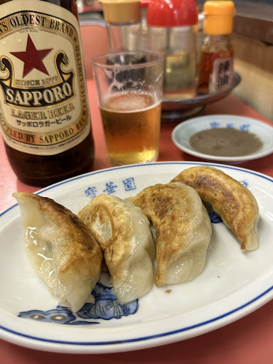 先ずは633(ビール大瓶)で喉を湿らせ、餃子の4個入りを注文。 蒲田といえば羽根つき餃子が有名だが、ここのはオーソドックスな焼き餃子だ。 餡は野菜が多めで、味は気持ち強め。ビールのつまみにピッタリなやつだね。