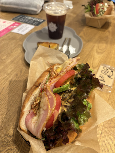 I ordered a sandwich and coffee. Often, sandwiches at trendy cafés tend to be on the smaller side, but here it was the opposite. The sandwich was surprisingly large with plenty of filling, making it very satisfying. The salmon was especially tasty and fresh. The bread was on the firmer side, which added a nice chewiness and balance to the sandwich overall.