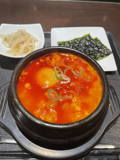 スンドゥブ、辛いかなーと思ったけど意外とそうでもなく、海鮮の風味と卵のまろやかさがとても良い感じ!