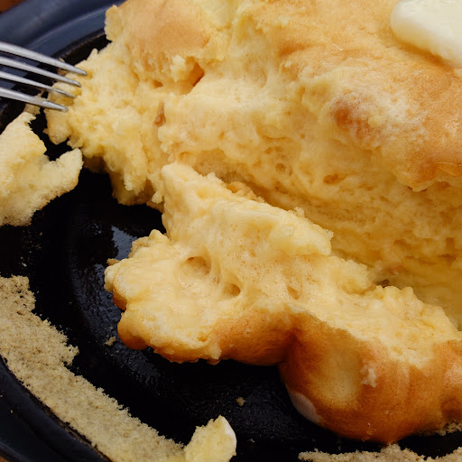 次の予定があったので1時間しか時間がなかったが「出来上がりまでに30分程要する」と書いてあったのでギリギリ時間があると思い頼んだのだが…。 パンケーキが出てきた時点で30分経過しており、焼き直してもらう時間もなかった。 表面以外はかなり大部分がドロドロだったので「もしかしてこの生焼けのドロッドロがこの店の調理スタイルなのか…?他の店のはどこもふんわりしていて美味しかったぞ…?」とテンパった考えになってしまい、添付のメープルシロップや生クリームでごまかしながら無理矢理食べきった。 「食べ物を残すな」というしつけをした親を少し恨んだ。