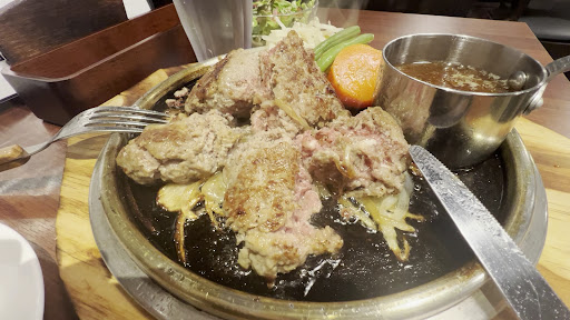 ファストフードとは全く違うハンバーグなので、食感やレア具合も牛肉を感じるには十分でした。ぜひ今度は違うソースとステーキを試したいと思います!