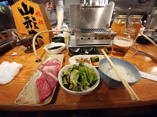 We elected for the "Recommended Course" which was about 13,000 yen per person (about US$ 90 at the time). The food, or I should say the meat, was wonderful. I didn't realize that this was a Korean-style barbecue restaurant where you grill your own food at your table. We each took turns grilling and that made the dinner even more fun.