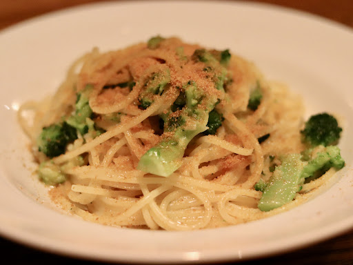 胡椒がかなりしっかりと効いており、チーズソースもそこまでもったりとしていないので、案外軽めな印象。 最初に注文したパスタだったが、食べやすい軽さだったので、前菜的な立ち位置としてもオススメ。