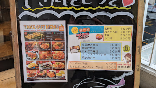 また、先日お店の前を通ったときに見たのですが、写真の通りランチのテイクアウトもあるとのことで、今度利用してみたいと思っております。 500円からお弁当などあるので、楽しみです。 一度購入してみて、もしよければリピートも考えてます。 (居酒屋ランチが自宅で楽しめるという...