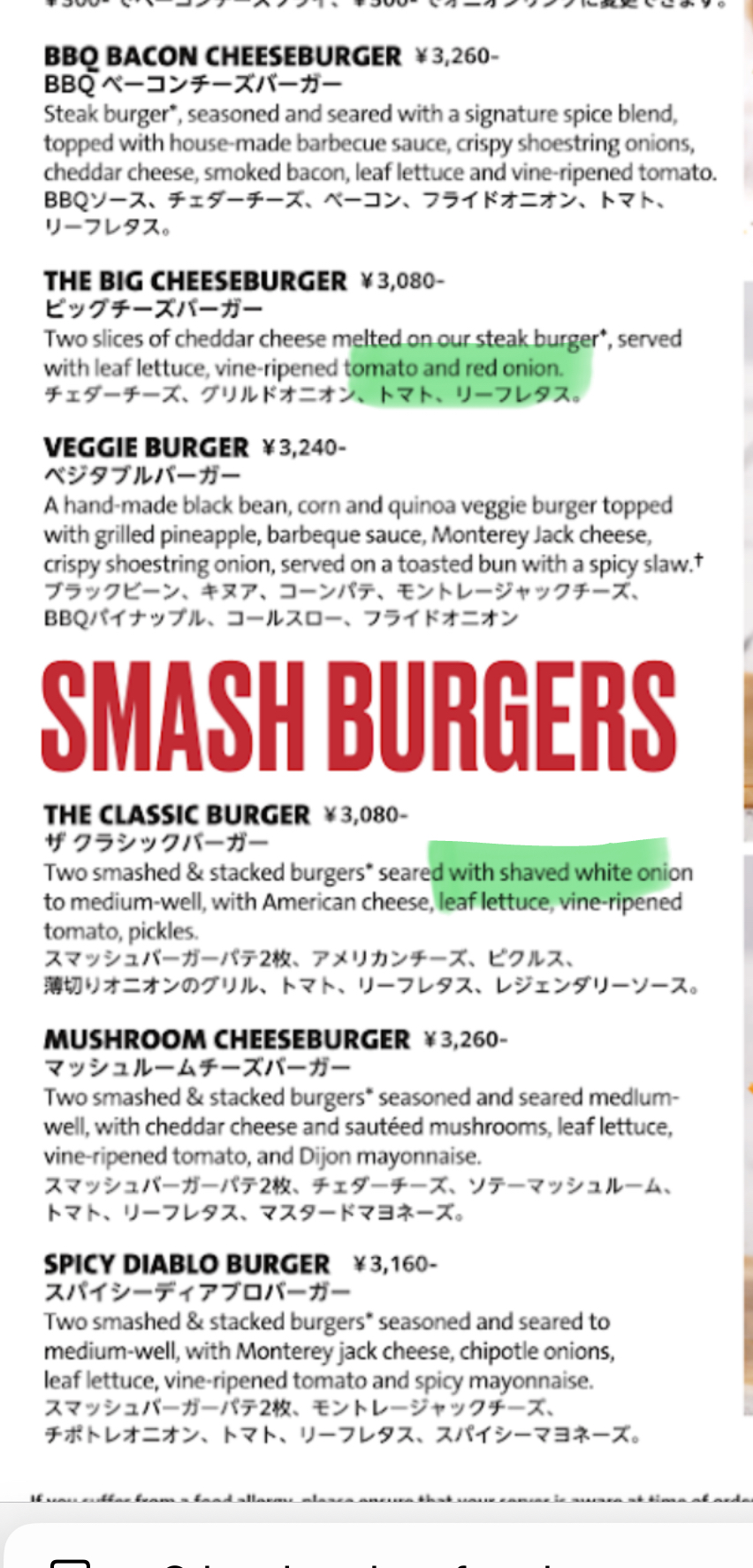 Worst Hard Rock I’ve ever been to! I’ve been to many Hard Rocks around Japan and around the worldly and this Roppongi one was by far the worst. First, While I can speak Japanese, my reading ability is much lower. Therefore, I was looking only at the English on the menu. I was interested in a cheeseburger so I was debating between a big cheeseburger and a smash classic burger. The deciding factor was that I dont like onions. The big cheeseburger has only red onion (which can easily be taken off) while the smash classic has white onion cooked in the cheese. Therefore I choose the big cheeseburger. However it arrived with white onion cooked in….. not wanting to create problems I was quietly pulling them off. The waitress came and asked how our food was…. I said this is not what I ordered. She was confused and went back to the kitchen. I started to eat my burger which by this time was mostly cold. Then another woman came and said that the English is wrong and the Japanese is different. I said ordered based on the English so why is it my fault that it’s wrong? She only said sorry. In my opinion, If the English on the menu which Hard Rock printed says Red onion and not white that must be honored. How can Hard Rock operate offering one thing but serving something different without notice!?!?
