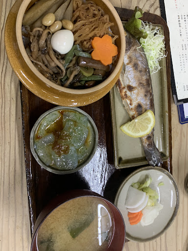 Read moreEnjoyable to the local delight food. From the clean mountain and river. I tried the single food(the rice and grilled fish with salt). Yes a bit expensive(mine was 2100-2200Yen) Take a look the menu...