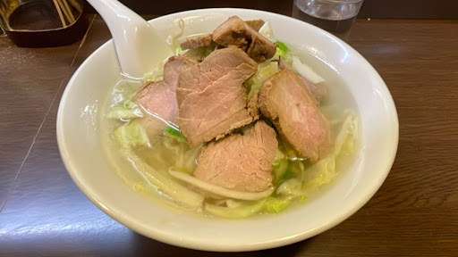久しぶりだか初めてだかのチャーシューは、薄っすらと塩味も効いて美味しい。所謂とろけるタイプじゃないし、何か凝ってる訳じゃないけど絶妙に美味しい。野菜も火が通り過ぎず歯応えを残して茹でられている。スープも野菜の甘味を感じる。普通なんだけど美味しい。スーパーノーマル的な感じ。なんだろうな。伝わらないかもしれないけど、スーパーノーマルが極々のバランスに成り立ってる感じ。人によっては退屈とか普通に感じるのかもしれないけど。歳を取って来ると退屈に聞こえたブルースがやたらと魅力的に聞こえる感じかな。ブルースというより店は演歌って感じだけど。ま、料理なんて人の好みだけど、普通だけど深い。強いていうと不満は、並んでるから面倒で足が遠のき、結局タンメンしか食べてないくらいかな。