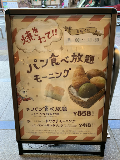Read more平日のモーニングビュッフェに伺いました。 10時半過ぎに行ったのであまりゆっくりは出来なかったのですが、リピート無しなのは確定しました。 ①こちらの口コミで焼き立てのパンを持って来てくれると見たのですが、全て冷たかったです。(早い時間なら焼き立てなのかもしれません) ねこねこ食パン系は常時置いてあり、自分で取りに行くスタイルです。 日によって内容は変わりますが、3種類は常にあると思います。 そしてトースターは1台のみです。 ねこねこ食パンは半分にカットされたものが3枚ギリギリ入ります。 ②無愛想な店員がいる口コミ、本当でした。 パンの説明無しにパンを見せられ、これは何ですか?と聞かないと答えてくれません。 2巡目だったので大体は把握しておりましたが、1巡目でこの方が来たら初見の人は困ると思います。 パンの説明はいりますか?の一言くらいあっても良いと思います。 ③退席後のテーブルはそのまんま、店員がテーブルを拭くなどの作業は見られませんでした。 パンカフェではなく、フードコートをイメージしていただければと思います。 そしてアルコールウェットティッシュなどを持参してまず初めに席を綺麗にする事をオススメします。 ④新作のパンやチョコリングなどは回って来ませんでした。 約1時間の滞在で、パンの巡回は3回ありましたが、2巡目で1種類増えたのみ、あとは一緒でした。 新作のパンなども入れた方が、宣伝にもなるのになと思いました。 美味しかったら買って帰ろうと思いましたが、昨日の売れ残りなのかと思ったら買って帰る気になりませんでした。 ⑤イートインスペースは窓が無いので、閉塞感があります。 そして段差があるので、車椅子の方は厳しいと思います。 ベビーカーも置けるスペースは無さそうでした。 ファミリーはもう少し広い店舗に行くのをオススメします。