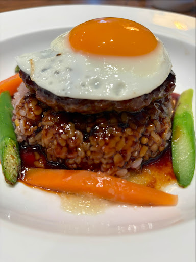 On our visit, we tried two dishes: the loco moco and the Hainan chicken rice. While the food took a little longer than expected to arrive, it was well worth the wait. The flavors were rich, with each dish carefully prepared. The Hainan chicken rice, in particular, stood out to me. The ginger sauce was absolutely delightful, adding a burst of freshness and warmth to the tender chicken. If you're a fan of ginger, this dish is a must-try.