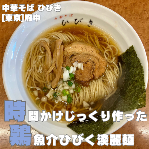Chinese Soba Hibiki @ 1-58-5 Shinmachi, Fuchu City, Tokyo Hi, I'm Sapio!  A cup of chicken and seafood crackling ðŠ carefully prepared with time and care! ð¥Points â Begins with a gentle sweetness and ends with a strong seafood aroma â Soy sauce is aged for a week.  ̄ ̄ ̄ ̄ ̄ ̄ ̄ ̄ ̄ ̄ ̄ ̄ ̄ ̄ [Score] 83 points â 3.8 [Access] Fuchu Station (20 min. walk) [Holiday] Tuesdays [Order Menu] Chinese Soba Noodle Chinese noodles 700yen [Lineup / System] 10 people at the time of opening, Ticket system [Ingredients] Animal broth, seafood broth, roasted pork, pickled bamboo shoots, onion, green onion, dried laver, Chinese noodles [Taste] Soy Sauce