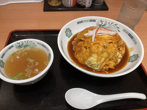 Read more日高屋、いやここはただの日高屋ではない。“熱烈中華食堂”日高屋である。熱烈、その言葉に負けない圧倒的本格中華がこの店ではいただける。店内に入ると愛想の悪い店員が「カウンターへどうぞ」と一言。この愛想の悪さが日高屋らしさである。キッチンに目を移すと中国人留学生が一生懸命に鍋を振るっている。中国人が作る中華料理。これこそが中華料理。さて、ここの日高屋は最近見られるタッチパネル式ではなく、店員に直接伝えるスタイルである。このコミュニケーションが独り身の私には嬉しい。「天津飯大盛り」ただそう伝えると冷たい水を持って来てくれる。まるで夫婦のようだ。何万も払ってキャバクラで恋人ごっこをするならば、ここで夫婦ごっこをしていた方がよっぽど有意義だと思い知らされる。10分ほどして熱々ほかほかの天津飯がやって来た。中華スープとザーサイが添えられているのが些細な優しさである。スプーンを手に取り、真ん中をサクり。トロッと甘酢餡。たっぷりと甘酢餡。スプーンいっぱいに甘酢餡。そして口いっぱいに甘酢餡。何だこれ!?あまりの酸っぱさに思わずむせてしまう私。ふざけているのか!舐めているのか!思わず中国人留学生を睨む。だが失敬、彼に罪はない。いけないのは日高屋のマニュアルである。失敗したと思いながらもう一口。ん?これはこれでいけるぞ。さらに一口。あれ?なかなかいけるぞ。さらにもう一口。ちょめめー!!うまいんかーい!!!そんな心のすするさんとせいやさんが飛び出してきました。一旦落ち着くために中華スープを、、ん!!!?うまーい!!全く落ち着けないではありませんか!!本当にこの店には驚かされてばかりです。
