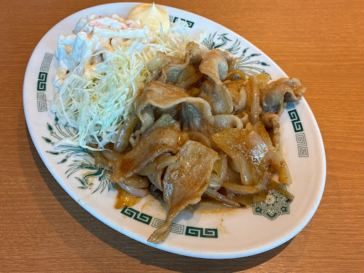 冷やし麺のポスターがあったので、入店。お昼のピークで満席だったので、相席になりました。本立てをベニヤ板で挟んで洗濯ばさみでとめた、チェーン店とは思えない手作り感溢れる衝立です。相席でタブレットがないので、口頭で注文。黒酢醤油冷やし麺650円にしました。冷やし麺の具は別盛で出てきます。たしかに、別盛にしないと、皿からハミ出しそうではあります。麺がもう少しキリっと冷やされていると、嬉しいのですが、ちょっとふにゃっとしていました。