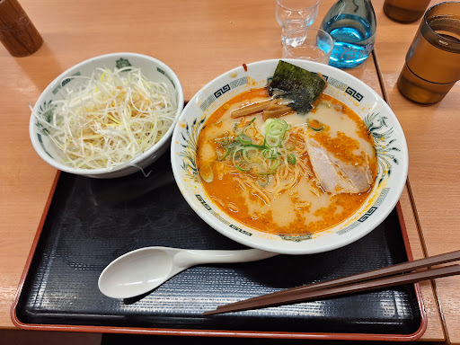2 bowls of ramen, gyoza, karage, and a bottle of sake The gyoza was okay. The karage was really good. (My wife already wants more) The spicy ramen had great flavor and a good spice that built upon itself. Made my nose run but I never felt it was a painful spicy. The noodles had a nice chew to them. For the price I'd absolutely go here again. The staff was super polite. Even with my really bad Japanese they knew enough English to confirm our order. (If you don't speak Japanese... Just point...