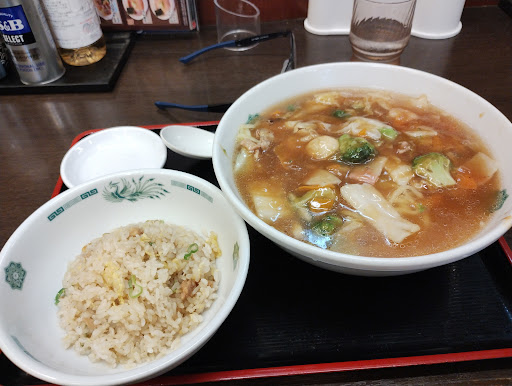 Read more土曜の晩御飯で利用。日本人店長と外国人男性の厨房、ホールは外国人女性。あまり混雑せず比較的ゆったり食事出来ました。 提供も早く、周知のとおりお安くて良いチェーン店ではございますが、こちらの店舗に限っていえば、中華料理の基本である炒飯が絶望的に不味かった。ゴワゴワもっさり。風味も悪い。きっと材料はチェーン店ゆえどこの日高屋も同じものを使用してるはずだから、たぶん作り方の問題でしょう。人生で一番おいしくない炒飯でした。きっとたまたまだったのかな。連れも同じ炒飯でしたが全くの同意見。 余談ですが、孤軍奮闘する日本人店長が食材を何度か2階に取りに上がってる僅かな時間に、フロア担当の外国人女性が思いっきりマカロニサラダをつまみ食いしてました。凄い勢いでモグついてたけど店長が戻って来ると口のモグつきをピタ!っと止め、バレないようにしてる様子が...