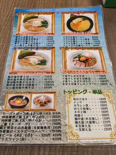 ⭕️駐車場🅿️沢山10台有り ⭕️店員の感じ良い ❌調味料胡椒と一味のみ塩酢ラー油無し ⭕️全席にティッシュ有り ❌ライス系大中小同じ値段🍚 日付: 2024/04/06土曜日 場所: 東大和ラーメン大冬樹 住所: 日本、〒207-0015 東京都東大和市中央4丁目962−12 ■□■□■□■□■□■□ 新・海の塩中華そば 前回2019/07/26...