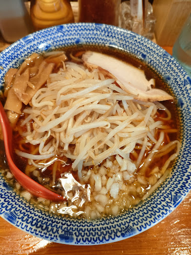 酉の市で賑わう八王子!年の瀬を感じる風物詩に秋色彩る銀杏並木!八王子に来たのならば食べなきゃイケない名物がある!という訳で魚介系の出汁が自慢のラーメン屋「弘富」さんに八王子ラーメンを食べに来ました!京王八王子駅から少し離れた高架下付近にあるお店で緑色の暖簾と看板が目印になります!お店に到着したのがお昼時でカウンター席だけの店内は、先客で9割程埋まっています!店内に入り残りの一席に着席し店内前方にあるメニューを拝見です!メニューを見ていると親父さんに「何にします」と一声あり「モヤシラーメン大盛り」と返事を返し出来上がりを待ちます!待っている間も新しいお客さんが次から次と来店してきますね〜!そんな賑やかな店内で水を飲みながら待つ事6分程度でモヤシラーメン大盛り(750円+50円)がカウンター前方に到着です!モヤシラーメンは、八王子ラーメン特有の玉ねぎの微塵切りが入った八王子ラーメンでシャキシャキした食感のモヤシとダイス状の小さなチャーシューが入った八王子ラーメンです!モチロンチャーシューも健在で、噛めば噛むだけ旨味が染み出るチャーシューですよ!そんなモヤシラーメンのスープは、醤油のスッキリとした鰮の出汁が香る薄口のスープです!味わい的に醤油の味は、薄口ですが、その薄口の味わいが鰮の出汁から出る旨味と香りを活かす役割を果たしています!スープを飲めばユックリと体に染み渡り体の芯を温めてくれますね!細麺の硬さの塩梅丁度良くスッキリしたスープと良く合う喉越し良き細麺です!シャキウマのモヤシラーメンをズルズルとダイソン並みに一気に吸い込んで完食です!食べ終わり会計を済ませた所で待ちのお客さんに直ぐに席を譲り退店です!鰮の出汁が本当に良く香る八王子ラーメンでしたね!特にスープは、鰮のエグ味や臭みの無い純粋な琥珀色のスープで本当に美味しかったと思えます!ただ醤油味の薄い濃いで好き嫌いが分かれるラーメンなので濃口が好きな方には、やや不向きなラーメンだなと思えましたね!ですが、値段設定やラーメンの内容を考えるとコスパが非常に良い良心的なラーメン屋さんだなぁと思えました!皆様も鰮の出汁が香る八王子ラーメンを「弘富」さんで食べてみて下さいね!親父さんの人柄が大変良く狭い店内でも安心して食事が出来ますよ!少し長く語りましたが、ここら辺で締めさせていただきます!それでは、鰮の出汁が染みる八王子ラーメンに心から感謝を込...