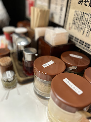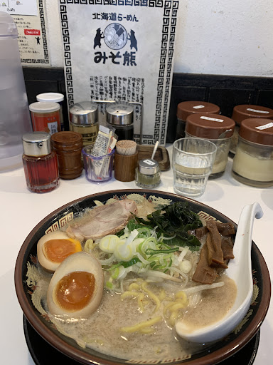 Read more夜はたいがい行列ができている人気店です。私が伺ったのは夜10時頃で、酔っ払って出来上がっているお客さんばかりだったので、ラーメンを味わう場所ではないと思いました。 麺の小盛りと大盛りが選べて、小盛りだと120円のトッピングが無料とのことでしたが、無料になりませんでした。 常連様カードは言わないともらえないようで、もらえませんでした。 卓上調味料はサイトにかかれている通りたくさんの種類があるのですが、人手不足でしょうか?空のものや荒れたものが多く、ちょっと使う気にならず。 大きなメニューが店の外にあるのですが、ほとんどの人は食券機の前で悩みながらのご購入なので時間の無い方にはおすすめできません。 夜遅くにお酒が飲めてついでにシメのラーメン、であれば夜のみそ熊はおすすめです。
