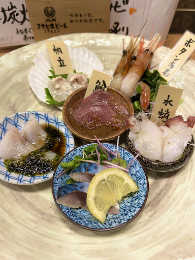 Casual izakaya for seafood, Hattori Jozo's kelp soy sauce & salt from Kumaishi deep-sea water.