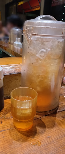 2023年6月の平日20:50ぐらいに訪問。空席3席ほどだったの直ぐに座りました。その後もぞ後続と来店があります。店内左側におしぼりがあり、1つ頂きます。こういう昔ながらのサービスは地味に嬉しいものです。また、お冷は「ジャスミンティー」のようですね。