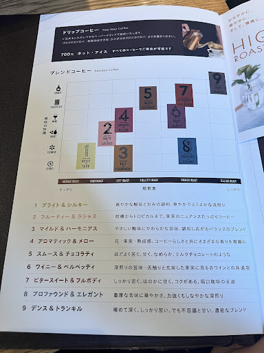 9 different kinds of coffee with a scale for you to decide the aroma and bitterness/sweetness you want. We got a mandarin parfait and a tiramisu and both were so tasty. Paired so well with the coffee! What a tasteful cafe in a residential neighborhood. A bit of a 15-20 min wait on a Sunday and the interior wasn’t too spacious or quiet but we had a great...