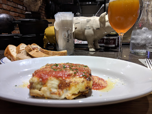 I’d give it a 4.5 if I could. This place has been on my list for a long time, and I’m glad I was finally able to go. They serve a variety of pork dishes, from pulled pork to baby back ribs to dry-rubbed ribs. The pulled pork was unlike any I’ve ever had, made in a skillet and served in a broth. It was tasty. The dry-rubbed ribs come as a single rib, with your choice of sauce (I went with the honey mustard which I recommend). Then there were the baby back ribs, which were tender and fell off the bone, but the sauce was a little too tomatoey for me. The ambiance is great with high ceilings and lots of natural light. The service was fast...