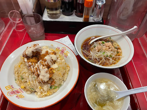 Read more唐揚げ定食(マヨネーズ)を注文しました.. その料理の出来は あまり口に馴染めない ゴツゴツした衣の硬さと ジューシーさの無い揚げたてとも思えない「ぱりっ」 「さくっ」とした口ざわりがそこには無く だめ 違う この提供の仕方は 違う手法と言うか..おつまみのぶるいに見て取れる,違う方向性というか頂けない料理とみた..味も少し変わった様な味で..心なく期待はずれな 一品.. 見た目の出来具合 そしてその味..違うのだから..バリっとした衣からか..そこからくる何か あまりおいしさがこない,口に合わない中国風の香辛料のようなもの(実際のところは分かりませんが)が口に残る様な..そんな味からは唐揚のおいしい感動は得られない..そんな来客に,より納得して,喜んでもらえる様な日本人の口に合った味覚を 日本の風土を重んじて,その心とたましいを調理に注げられる様な心温まる日本人向けの料理を施してもらえれば.. 来た甲斐が有るというもの..味噌󠄀ラ―メンも 味の良さは分かりますが..当たり前の様な味でこれこそがここの店の味といった「決め手」が無く思える..味噌󠄀の味に頼っている..!?そしてまた 日を違えて来店した時に 定食を頼んだ その時,よく見たら定食のスープの中に 「毛」が入っていた..とても気色悪かった.. はじめに店員さん はぁ とかいった感じで 毛入りのスープに対して 謝る事はしなかった 少々お待ち下さい..と..そして今度は店長さんと女性店員の二人でやって来て それ..新しいのに替えたから..すみませんでした..と..!?謝りはしましたが..今ひとつその謝り方に うわべだけのものでしか無い様に思えてならない..そんな軽率さからか,そんな調子では 同じミスを繰り返す可能性有りと どうしてもそう受け止めてしまう..次,来るときは「毛入りのスープ」なんて 止めて下さいよ.. 断じて..それに類似した一番館での タニンゴトではあるが,見て見ぬ振りの出来ない ある日の出来事..カウンターに座ってマーボー豆腐を食べていた あるひとりの お客さん.. ひと口 それを食べる度に 【何だこれ まずい んーまずい】を繰り返す そしてほんの三口くらいのところでスプーンを置き,残りの大半のマーボー豆腐を残し,渋々店を出た..そんな,たまたま遭遇した 格好のクチコミ投稿ネタ..すぐさまクチコミ投稿として使える 送り手 受け手にとっての 手前に好都合🌷好条件🌷な生きやすい社会を形成すべく情報共有の輪..自分スタイルであって構わない..!?⁉️...