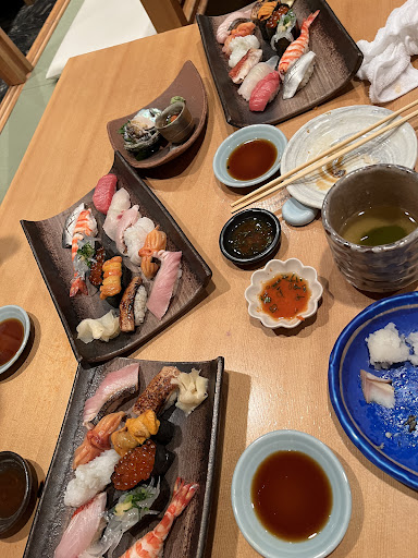 Read moreNot sure about all the negative comments... The service was decent, not perfect but not bad either, and we did not feel discriminated against. The "corner" people seem to complain about is actually the coziest part of the restaurant. Locals were sitting next to us too, so not a "foreigner corner". The food was the best we had in Tokyo. We did the individual orders (not the sets) and the quality matched the price we paid. Sashimis were very fresh, soft and generous (the thickest sashimis I've ever seen). Fat tuna, salmon and scallop nigiri were melting in our mouth. The Unis were very fresh and quite good, though we had better ones at cheaper restaurants. We walked out full and very happy with our choice...