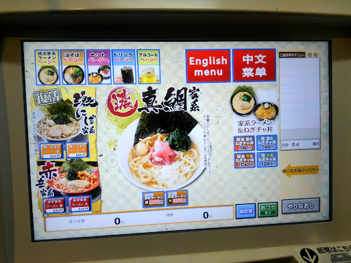 東京都調布市国領町。上質な焼き鳥を堪能したあと、流石に物足りないので、コチラヘ。22時半、国領で開いているお店は限られてきます。店外のタッチパネル式券売機でポチッと。少し酔っている時は辛いのやね(’-’*)♪