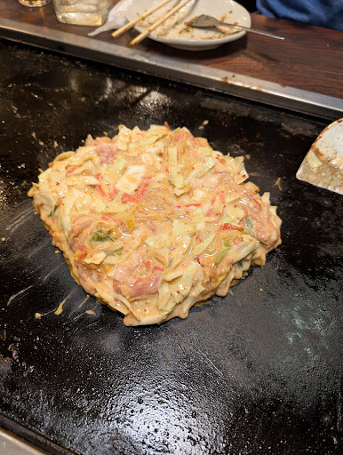 I ordered their mixed monjayaki, then went with pork kimchi okonomoyaki. Both were delicious and I would recommend searching how to cook monjayaki. The owner does show you how to do it, but definitely helps to see how it's done once you see how the locals do it so casually...