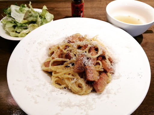 カルボナーラと迷いながらアラビアータにしました。 出来立てをすぐ提供していただけたので、ふーふーしても熱く、最初の3口目くらいまで軽くやけどをする熱さでした。笑 温かいまま最後まで美味しくいただけました。 猫舌の方はいつもよりしつこいくらいふーふーして食べることをお勧めします。 パスタの茹で加減もアルデンテで好みの食感でした。 味は程よいトマトの酸味と塩加減であっさりとしています。 とても美味しいです。