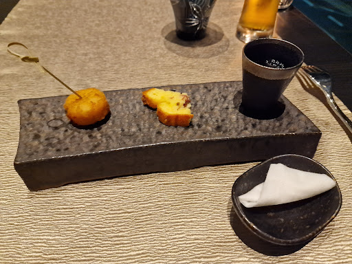 Have enough privacy and well designed food but staff people better to learn about the what is each dish more( I sometime come to the nice restaurant to learn about how to cook it ) . Each dish’s potion is good size. Nothing has any problem. They all taste good but this restaurant is inside of the terminal so comes with extra fee. Glass of sake and 6 course dish (ponchos, appetiser, soup, Main, desert a tea or coffee ) and totally 140AUD.