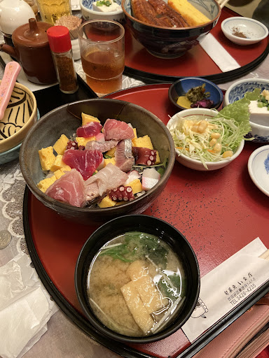We ordered a mixed sashimi chiraishi and unagi don, which were both delicious and reasonably priced.