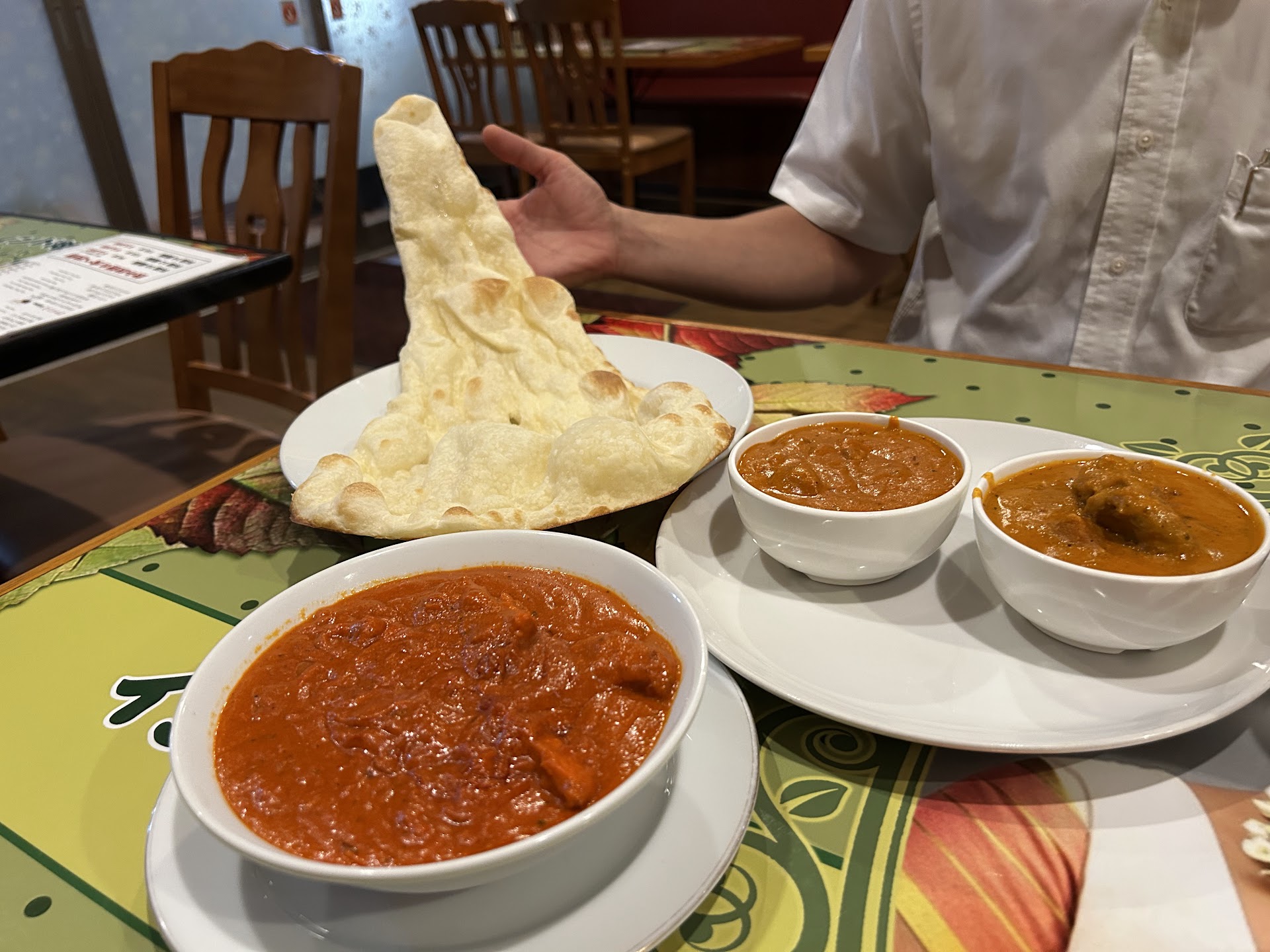 大きなナンが出てくることなんて、もはやウリにならないだろうけど、少し厚めでモチモチの焼きたてナンはやはり美味しくて定期的に食べたくなる。 おススメは2種(以上)のカレーのセットにして、一つをコクのあるバターチキンカレーにすること。バターチキンはいっそ甘めにしてもいいくらいで、もう一つのカレーを辛口にしてバランスを取るのが良い。