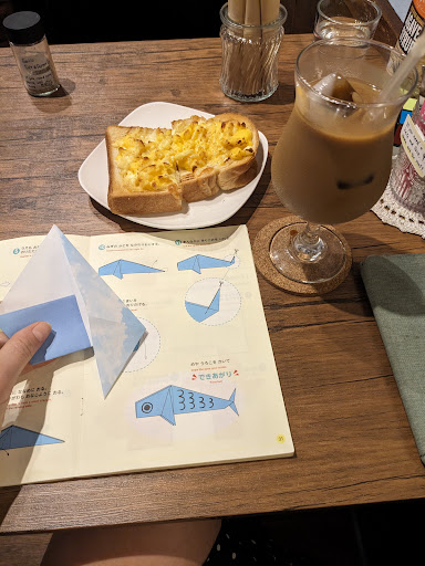 Read moreI was in Japan over a month ago and came across this cute cafe during my time in Tokyo, which was near my accomodation. It was hot and I needed a snack and a cold drink while I waited for my hotel room to be ready. Staff were very friendly and welcoming. I ordered their garlic bread toast and iced latte and it was very nice. Enjoyed listening to record music quietly playing in the background, as well as trying some origami while I was waiting for my order. Very foreigner friendly; from what I recall, they have their menu available in a couple of other languages besides from Japanese and English. I will definitely come back here if I ever visit Tokyo again, and highly recommend others...