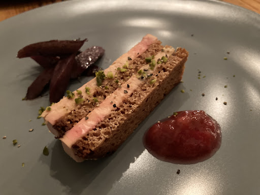 前菜のカルパッチョ厚めで、ブロッコリー&タコはさっぱりシンプルな味付けで美味しい。写真ないけどナマスは独特な味で苦手でした。 豚肉のパン粉焼きも脂しっかりで重ためだけど、食べ応えあり、赤のワインに合って美味しかったです。脂苦手な人は牛ハラミとか赤みが良いかも。うさぎ、鹿、鴨、子羊、豚、鳥、牛など、メインのお肉が豊富でした。うさぎってどんな味するんだろう。。個室やカウンターもあるみたいでした。【Google Translation】I came to a bistro in Ningyocho. I think there were four types of red and white wine. I'm glad that you can order by QR code. For some reason, the paper menu was small, so it seemed like you had to share it with other tables. It's a mystery.