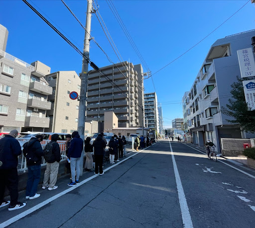 そんな入鹿さんは大人気。 午後2時と少しずらしてお店に向かうも、15人ほどの待ち。ちょうど高校生の団体がいたので普段はもう少し少ないのかもしれない。