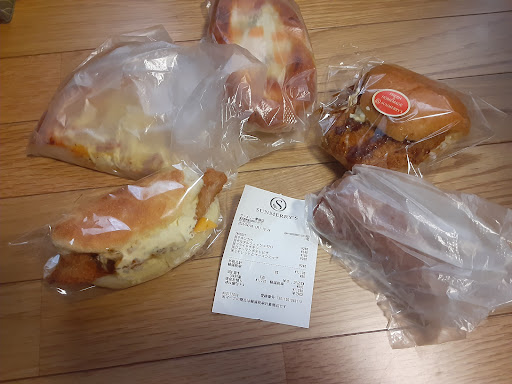 ◆本日の注文◆ 炙りチーズのウインナーフランスきのことトマトソース 302円 いちじくとクルミのはちみつクリームチーズ 226円 ごろごろビーフのカレーパン 199円 塩パン 108円