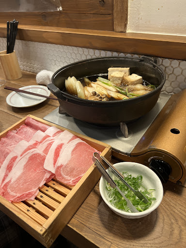 Read moreすき焼きなのに一人前1980円。正直クオリティが不安になる値段だったが、肉質は最高。肉も野菜も少ないなんてことはない。なかなか上質な霜降り具合な和牛でびっくりするはず。卵でなく出汁をつけながら食べるのが、脂の具合と程よくあい、くどくなりすぎず最後まで美味しくいただける。安さの理由は一頭買いしてるからこそ実現可能な値段とのこと。サイドメニューも...